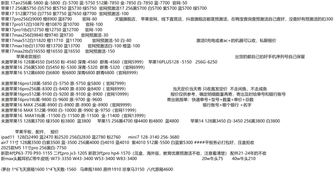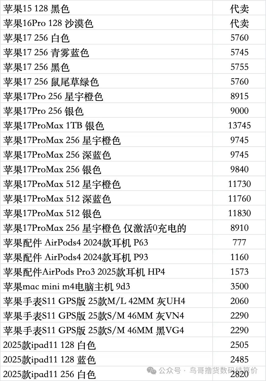 | 鸟哥收货iphone/ipad/手表系列结算价(前一天的结算价) |