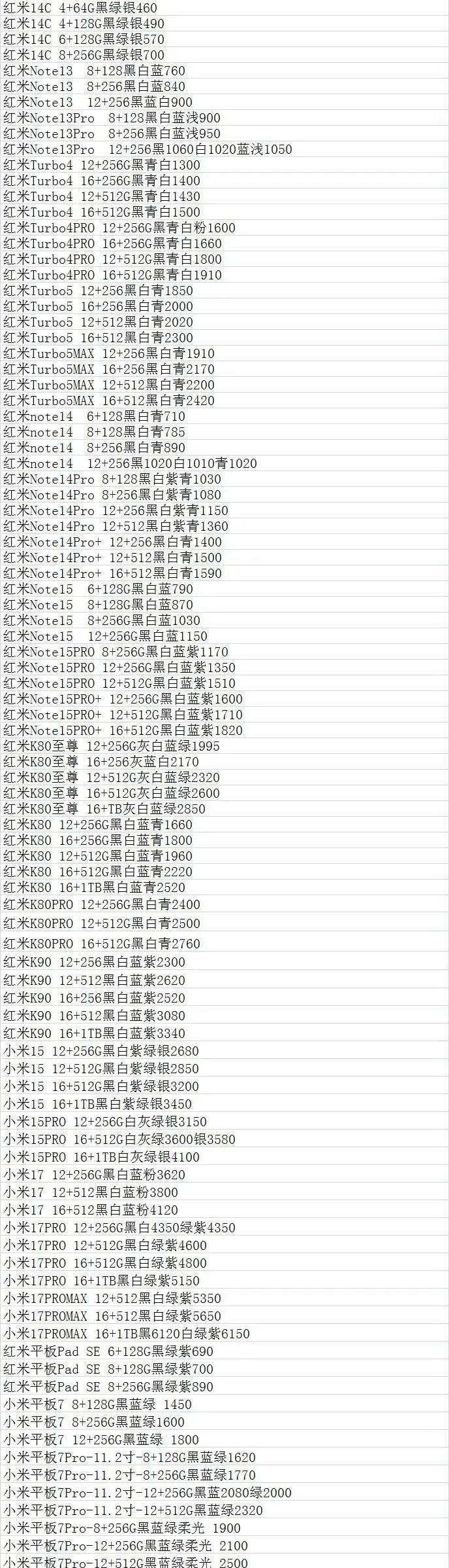 | 华为/荣耀/红米/小米参考报价 |