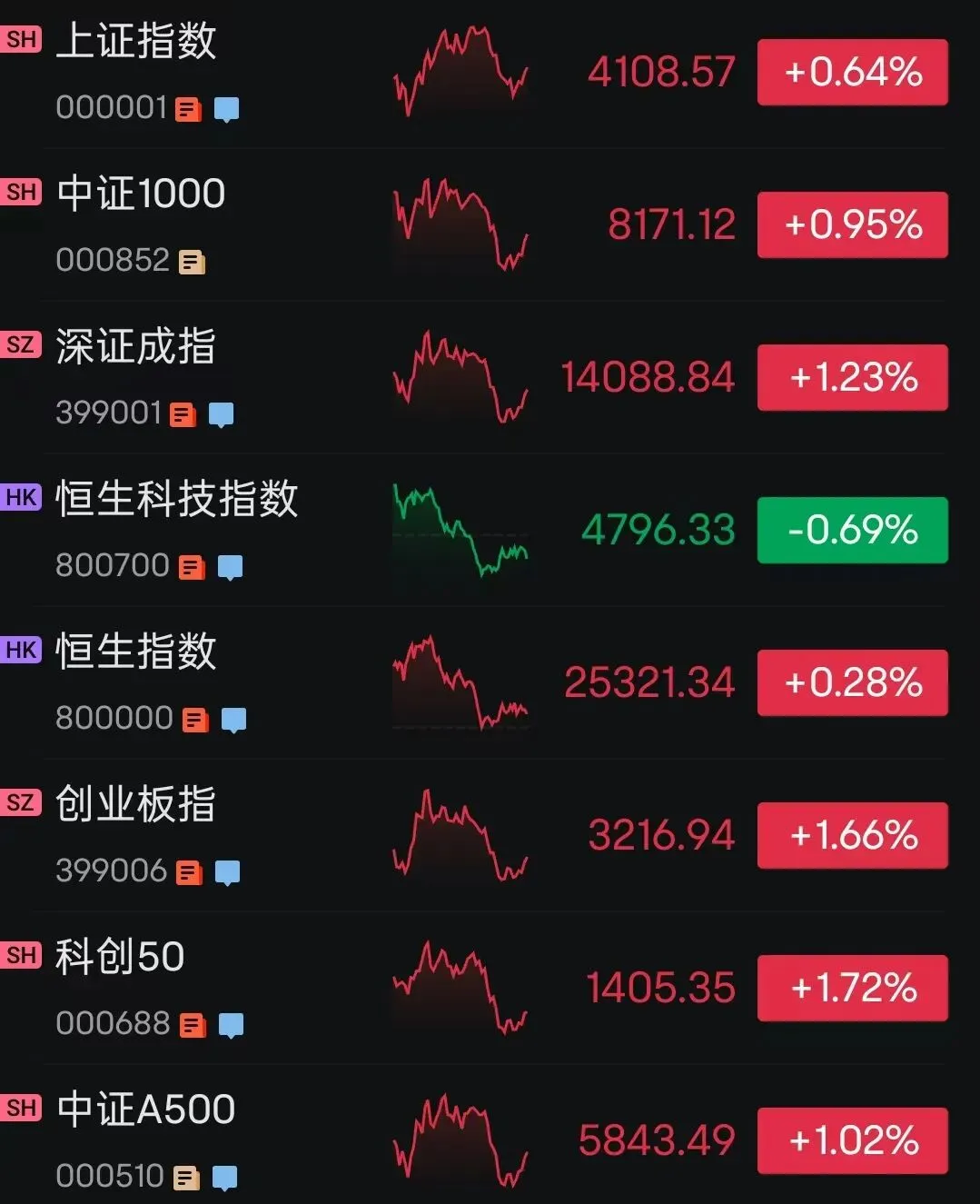 今天上证收十字星,板块继续轮动,半导体领涨,恒生科技收绿