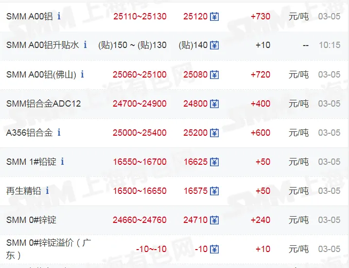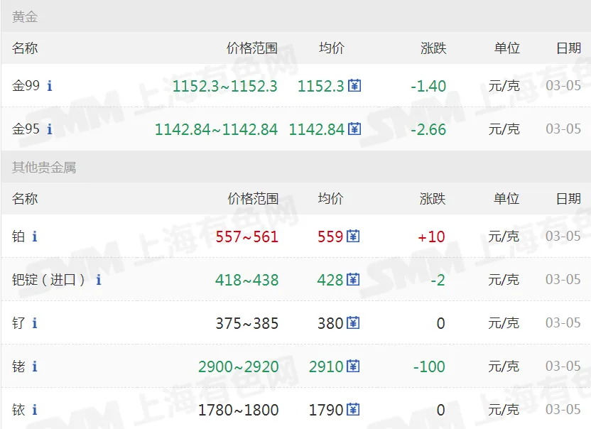 >20260305金银铜铝价格行情