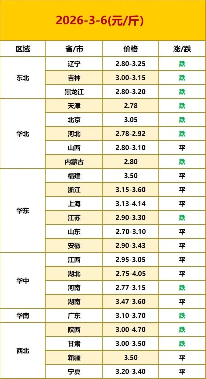2026年3月6日全国各地鸡蛋报价