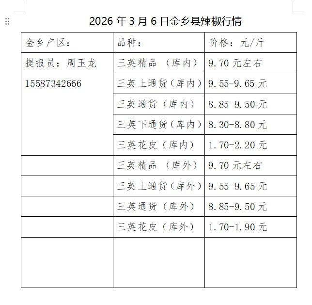 2026年3月6日金乡县辣椒行情
