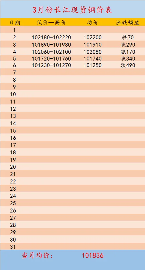 >【铜价】3月6日长江现货行情