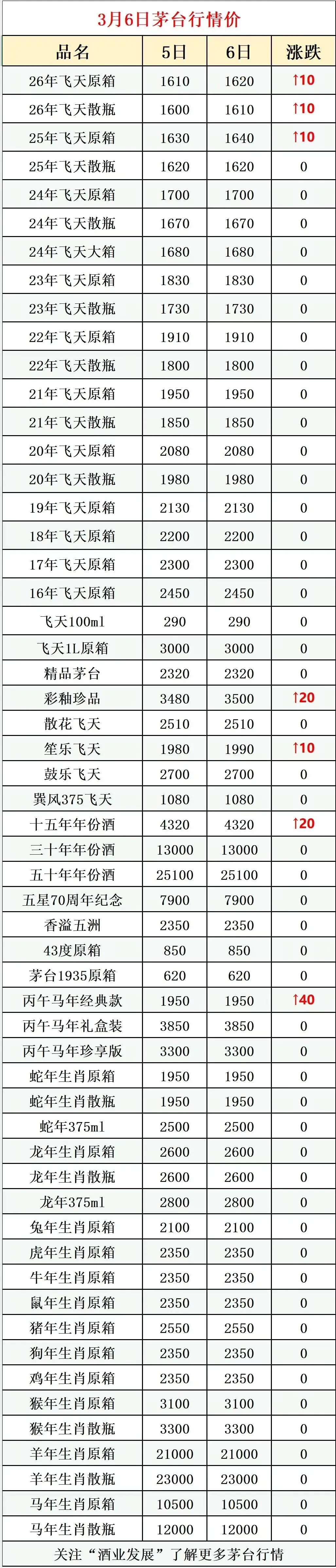 3月6日消息,据“酒业发展”监测数据披露,今日原件飞天茅台市场行情价在1615元上下浮动。