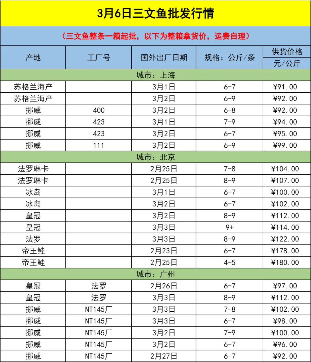 美国、日本和欧洲标准行情(2026.3.6) Standard Price in the US,Japan and Europe
