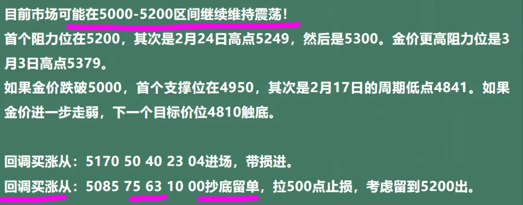 如果金价跌破5000,首个支撑位在4950,其次是2月17日的周期低点4841。如果金价进一步走弱,下一个目标价位4810触底。