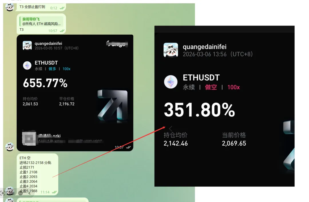 ETH昨天的分析我明确提到ETH在阻力出现假突破2149,这个会是做空信号,高风险可以做空。我让群友进了空单,已经到止盈3,成功拿下3倍利润!目前平仓大部分,剩下的设置保本止损等行情带飞!