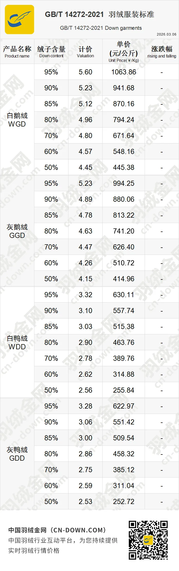 创建于2007年,逐步发展成为全球羽绒行情的风向标,是一家专注于羽绒行情价格发布的权威行业平台。作为中国羽绒行业的重要信息枢纽,羽绒金网持续提供实时精准的羽绒价格走势、市场行情分析和行业资讯为核心服务,覆盖羽绒产业链上下游的企业用户。