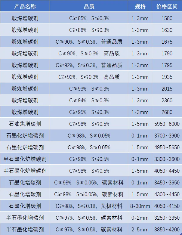 >3月6日增碳剂、石墨电极价格行情