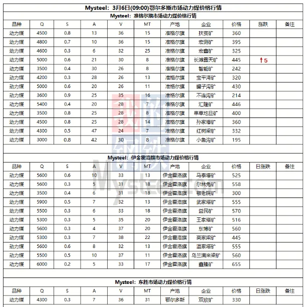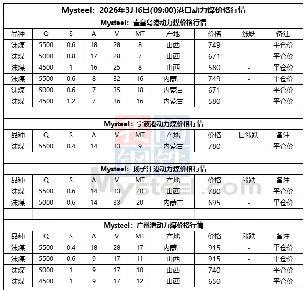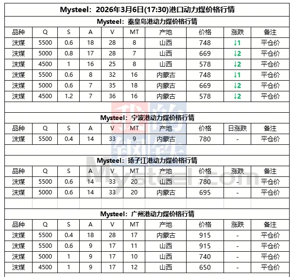 6日港口市场动力煤价格延续弱稳运行。港口市场交投延续冷清趋势,贸易商报价陆续下调,下游采买意愿不畅,市场交投僵持现状难改,实际成交稀少。随港口库存累积,加之情绪面回落,需求预期表现较不明朗,煤价支撑进一步减弱,当前市场操作较为谨慎,观望运行为主。预计短期内港口煤价延续稳中偏弱态势运行,后市需持续关注终端采购计划及港口实际成交等情况。