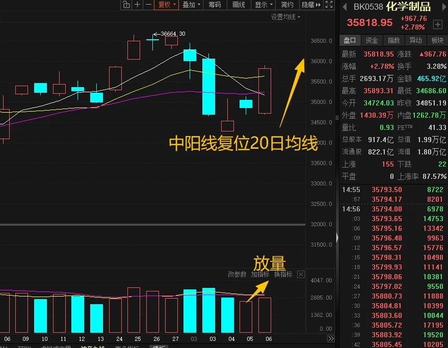 这是非常有质量的拉升。要知道,整体市场是连续缩量的,而化工却是放量的,这就代表了资金接下来的动向。