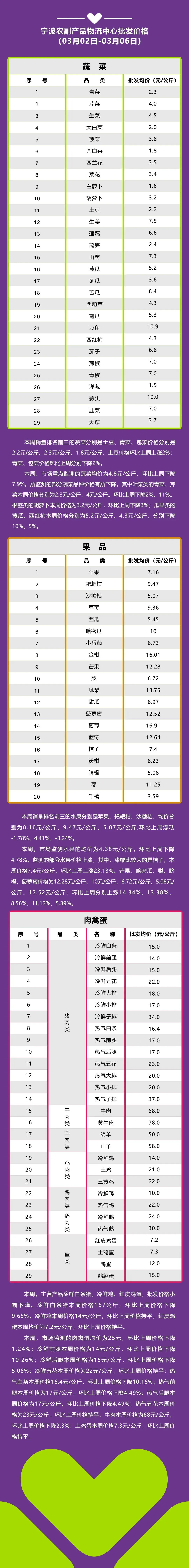 >品质服务丨宁波农副产品物流中心批发价格行情(03月02日-03月06日)