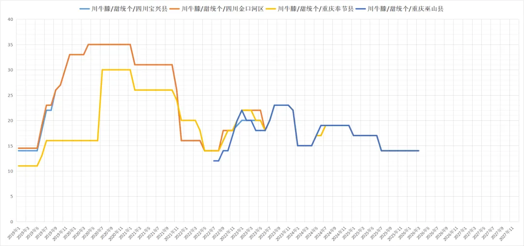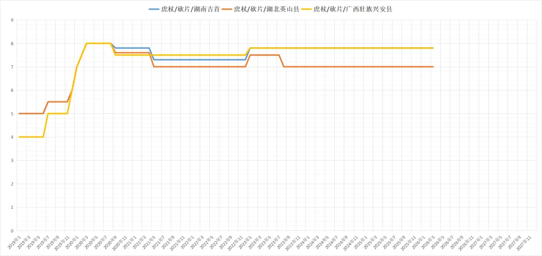 虎杖每年12月份产新至次年3月份含量最优,折干率最高,本产区野生资源广泛,大黄素和虎杖苷指数很高,但价低多年无人采集,今年本地已发展农民采挖鲜货500余吨,收购鲜货价格为1.6一公斤左右,下月产新结束,目前统段装车价为5500元/吨左右。