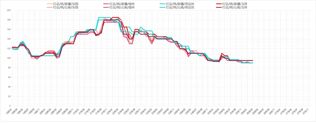 红花行情稳定,目前云南产区进入采摘期,市场销售依然以去年货源为主,近期行情在平稳中运行,现市场新疆与云南货多报价在90元上下,后市行情关注新货产出情况。