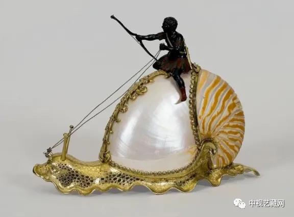 玛瑙制滚筒印章,新巴比伦时期(公元前626至前539),摩根博物馆藏J. P. 摩根去世后,他的儿子决定将父亲的大部分藏品在大都会艺术博物集中展示,展览展出了J. P. 摩根收藏于伦敦和纽约的藏品共计4100件。据说这个展览几乎让纽约“万人空巷”。对于美国民众来说,还从未领略过数量如此众多、种类如此丰富的艺术品。这富可敌国的收藏,让观者既惊叹又感激,如果没有J. P. 摩根,美国在建国百余年的短暂历史里又怎么可能拥有如此多的人类艺术和文明的瑰宝。J. P. 摩根收藏还有一部分捐赠给了家乡哈特福德的沃兹沃斯艺术博物馆,图为捐赠的Jeremias Ritter制作的鹦鹉螺壳蜗牛(约1630)生前,J. P. 摩根就曾不止一次嘱咐儿子,要把他的收藏都捐出去。儿子遵守了父亲的遗嘱,除部分藏品半卖半送外,其他占父亲总收藏约40%、约7000多件藏品都被捐赠给了大都会艺术博物馆。这些藏品中最珍贵的当属拉斐尔创作的教堂祭坛画,现已成为大都会艺术博物馆的镇馆之宝。