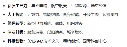 其实两会说的方向还是不少,真正想要炒作起来还是得看资金的选择,至于如何选标的,我们可以找相关方向的板块ETF,看该ETF持仓股里谁的占比较大就选谁,这是一个比较靠谱的选票方式,毕竟是专业人士真金白银买出来的。