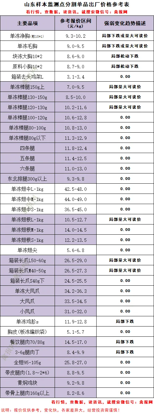 (1)山东地区:a、明日进厂社会毛鸡明面报价稳略强,实际价格主流3.50-3.52元/斤区间; b、屠企收鸡压力开始增加,特别是临沂济宁等地区毛鸡局部供给趋紧,局部找鸡力度加大;c、流通市场下单不积极,产品出货速度慢,局部库存增加明显,甚至开始找外租库;d、理论上的断档期在25号到4月初,看近期产品库存消化情况。