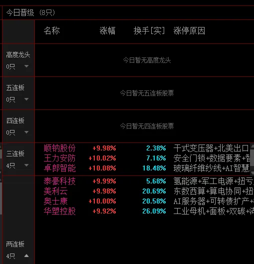 今天连板天梯: