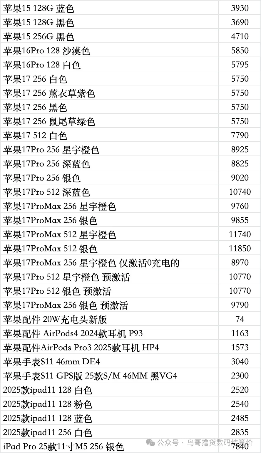 | 鸟哥收货iphone/ipad/手表系列结算价(前一天的结算价) |