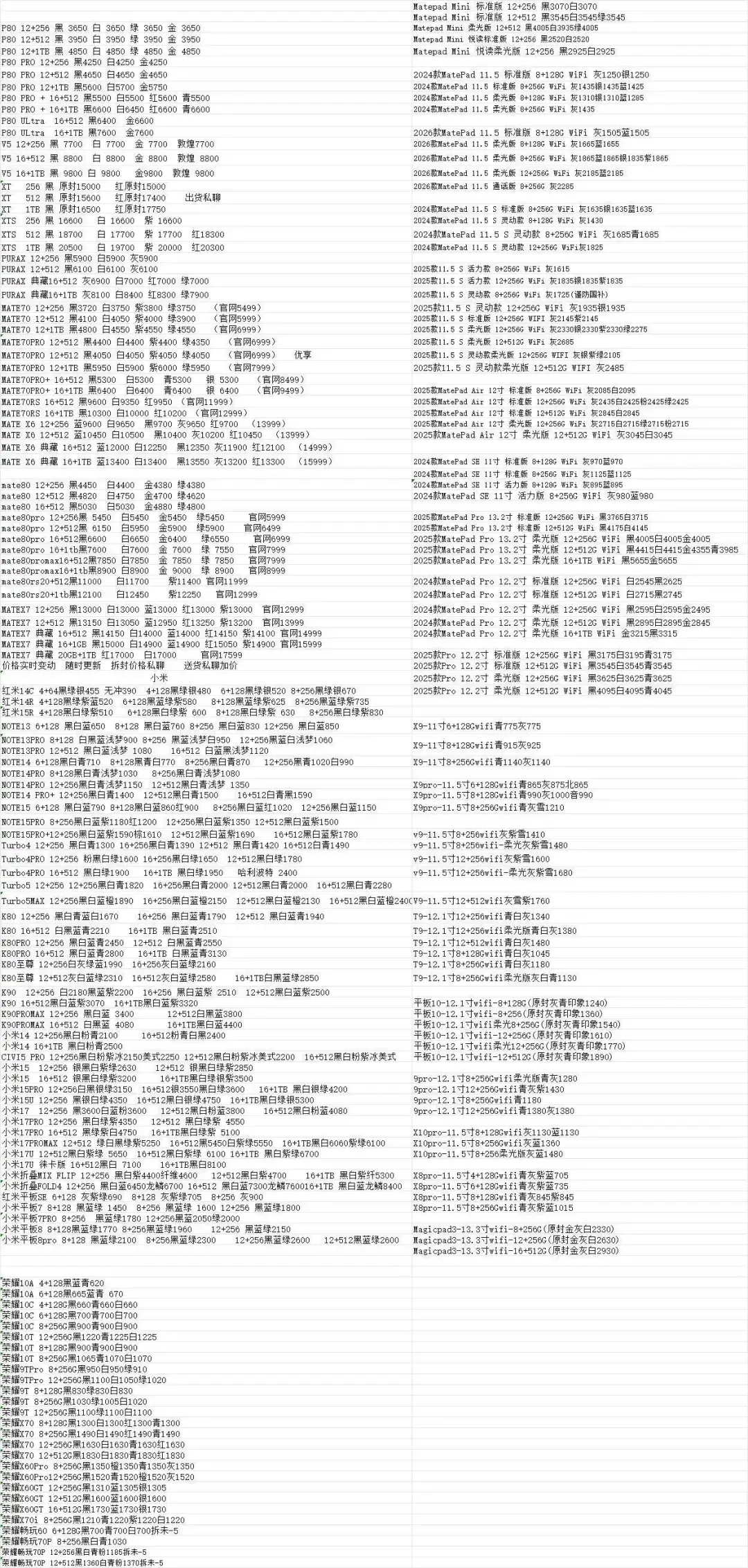 | 华为/荣耀/红米/小米参考报价 |