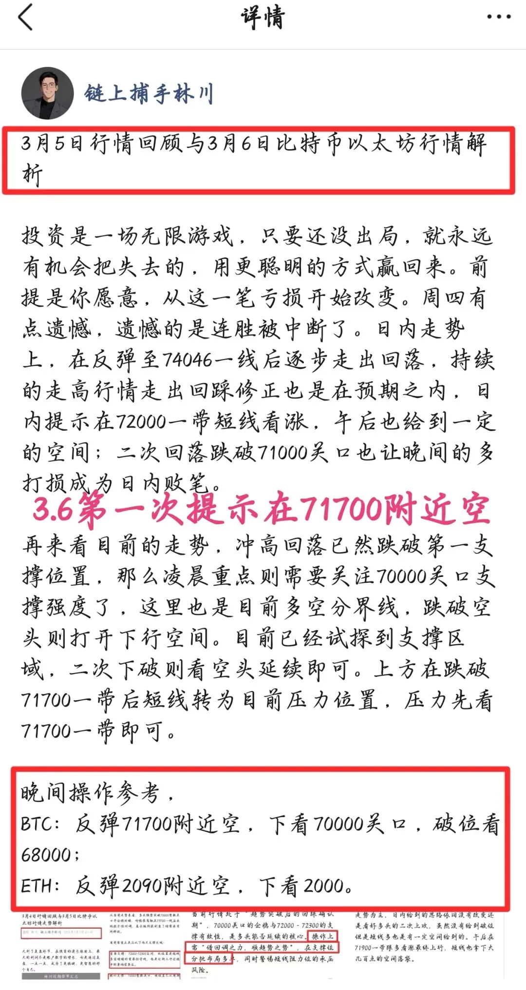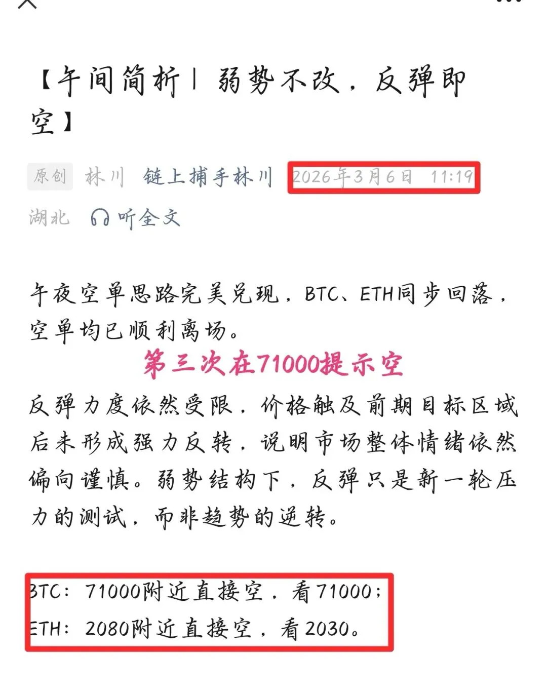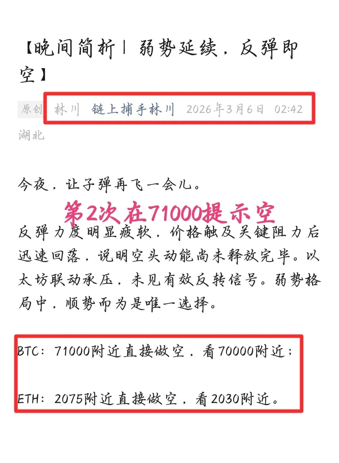 首先我们关注的就是71800-72300这个区域的支撑,不破则看做多头的修正走势,破位则增加调整空间下看70000关口,随着支撑的下破那么我们给到的思路也是非常明确,那么就是空。自71700一带我就在提示大家跟空看回落,日内行情果不其然按照预期走出,短线多次空全部给到目标位置止盈;