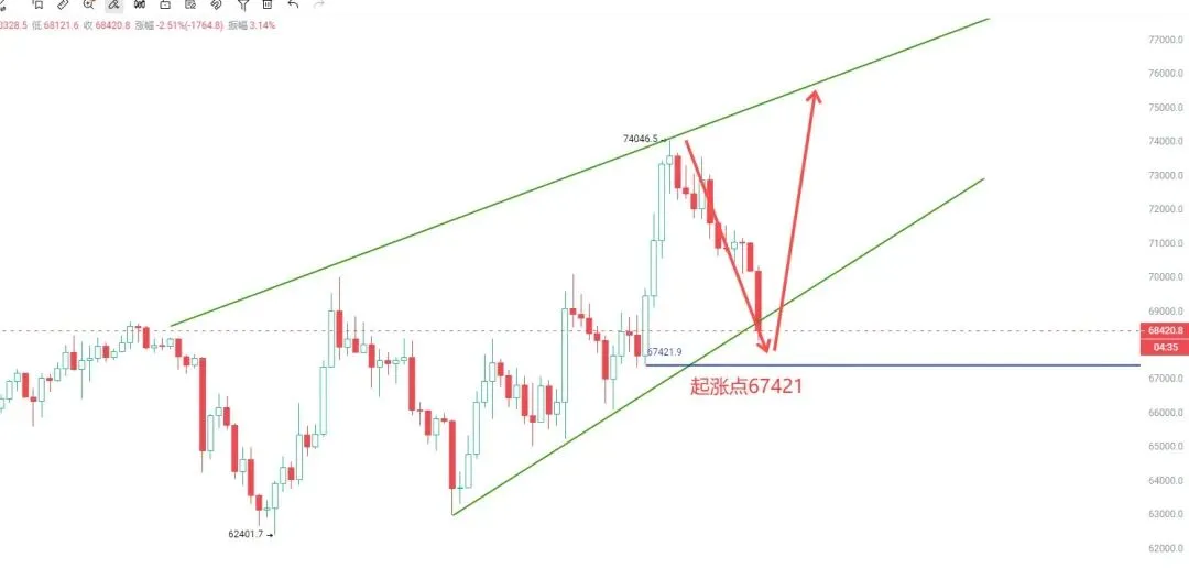 BTC:67500-68000附近多,目标看70000;