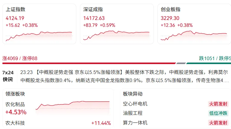 上证指数收盘报4124.19点,上涨15.62点,涨幅为0.38%。