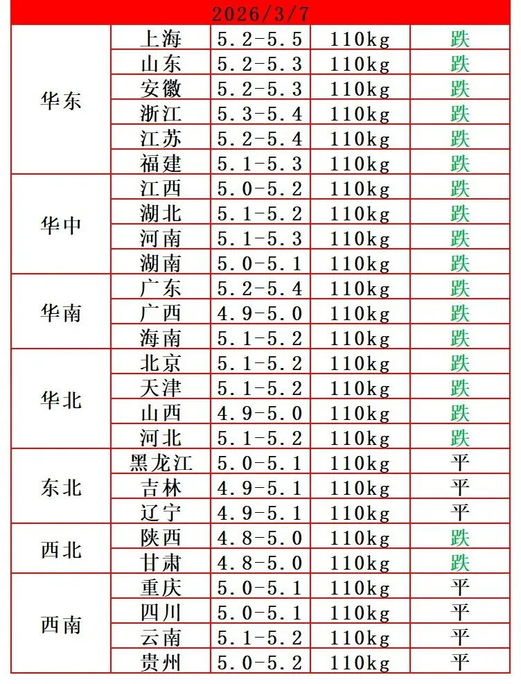 2026年3月7日星期六,鸡蛋行情描述↓ ↓ ↓