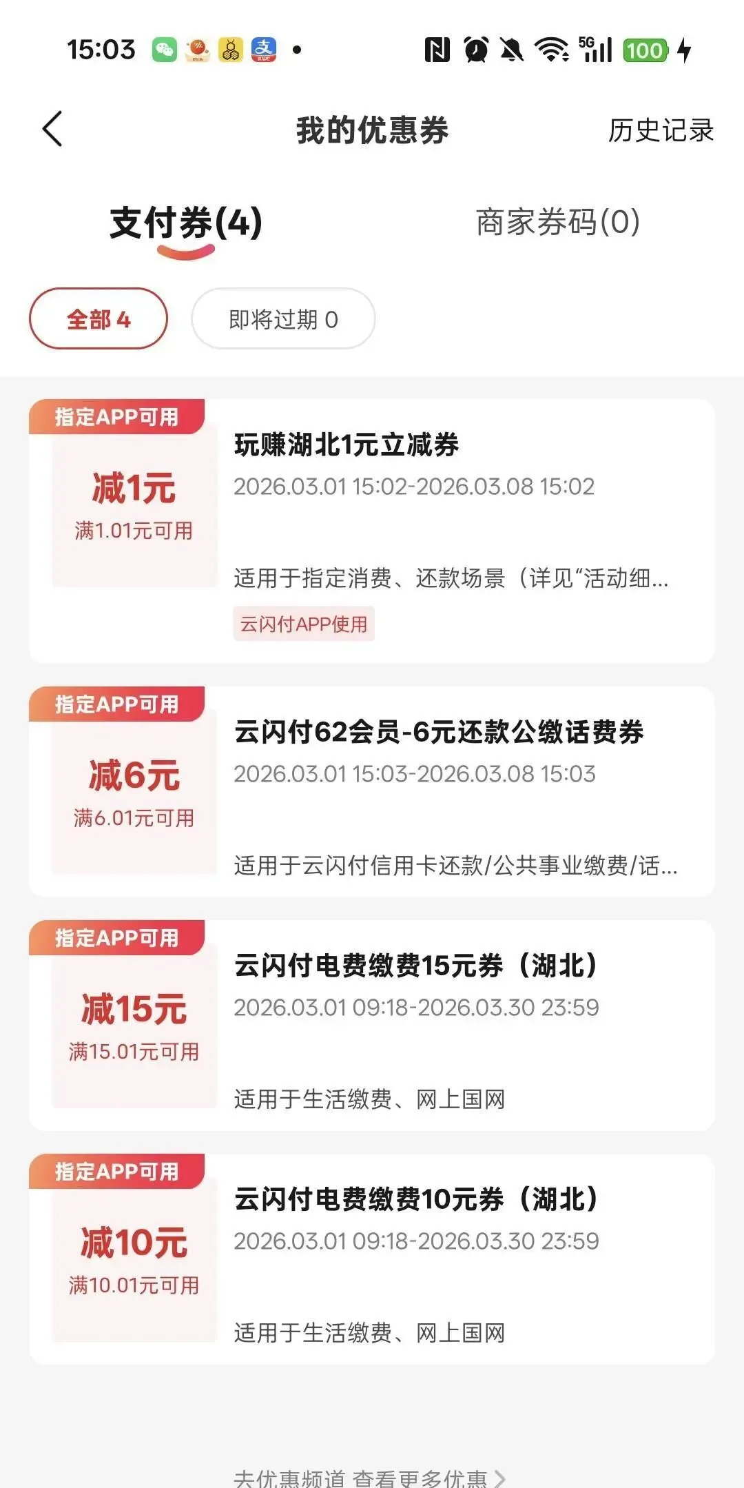 打开云闪付,首页找6元还款券。门槛10元?你就只还10块,系统自动吞掉券,你实际只掏4块。6块钱,白捡。