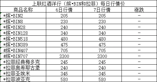 >上联缤•BIN、拉菲每日行情价发布3月7日