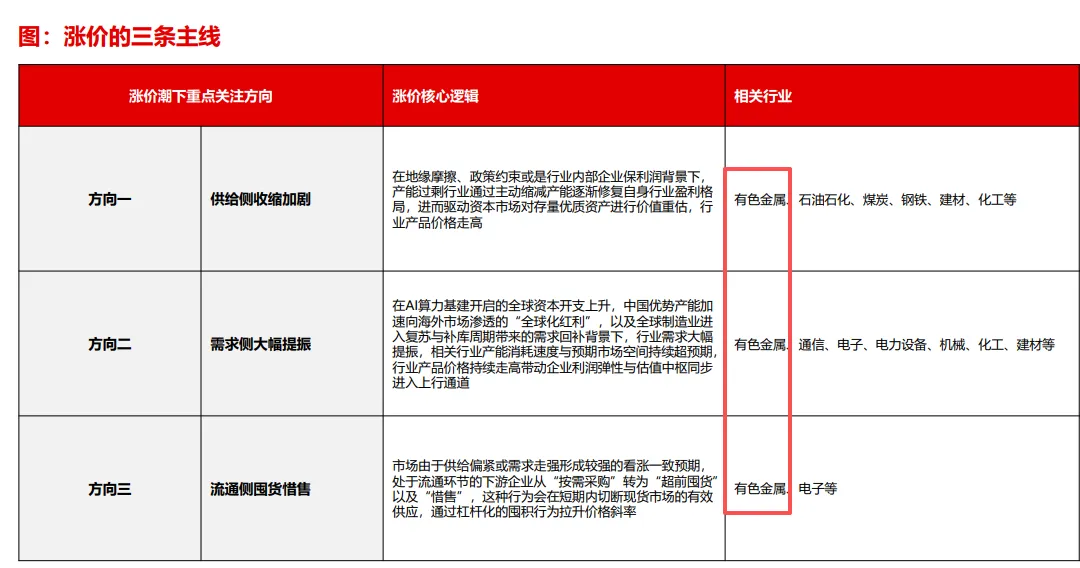 这些方向说到底,底层逻辑全都是“涨价”,最利好的行业还是有色。