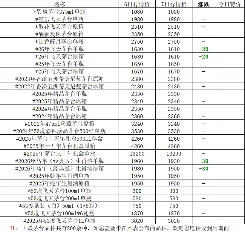 6.因茅台供销两旺,在一日之中偶有浮动属正常情况,本表仅作参考