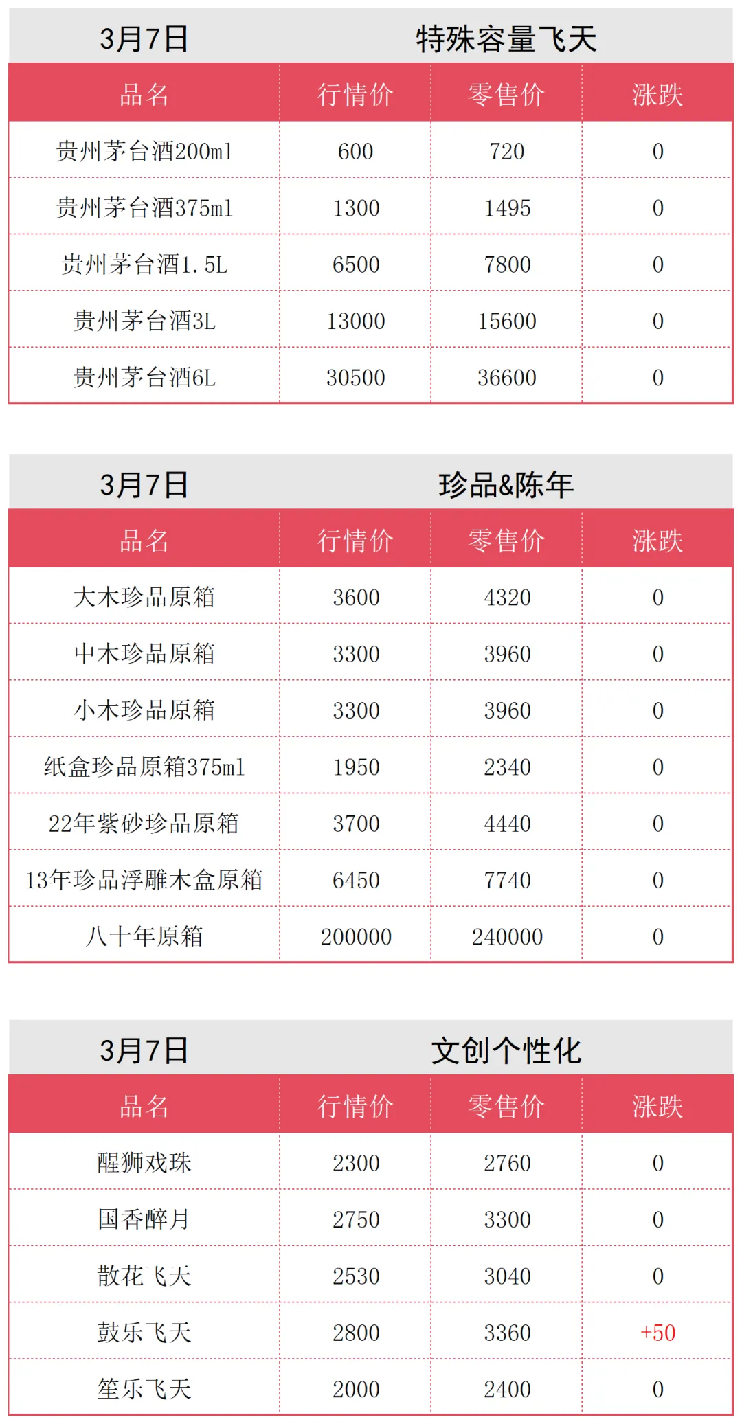 3月7日 新茅价格上涨 回收行情有涨跌 白酒回收行情参考价