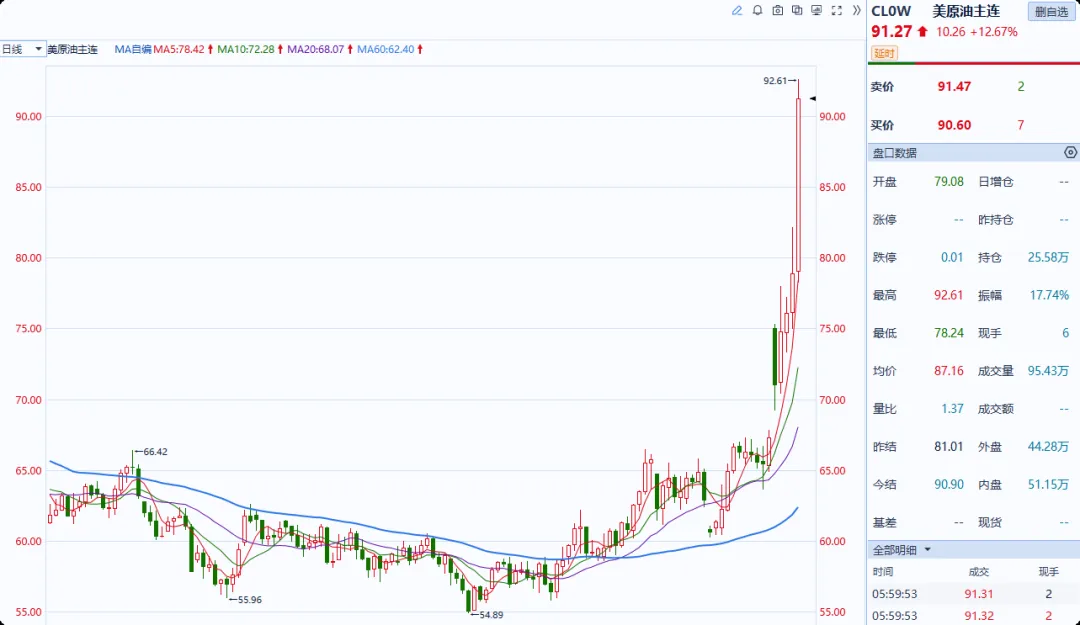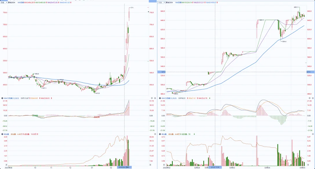 3月2日(周一),开盘原油系和欧线大涨,原油开盘涨停,而后打开,最终在11点才封板;