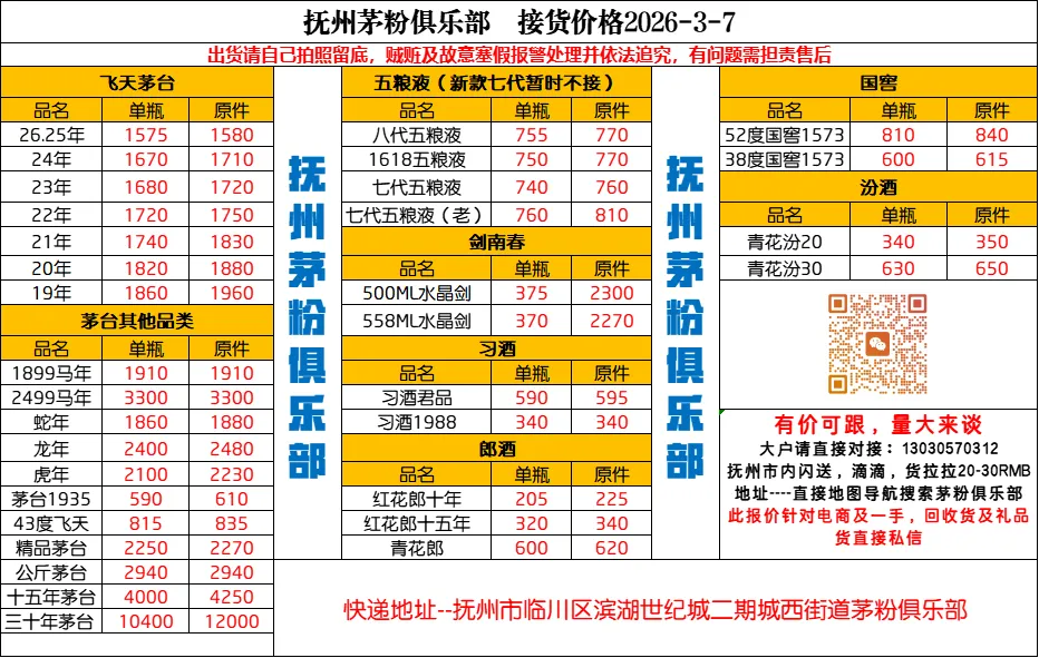 酒缘居名酒行情| 2026年3月7日