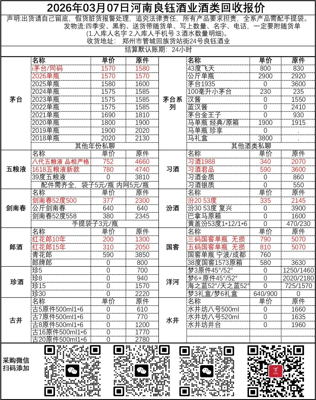 地址变更:收货地址: 郑州市金水区陇海快速路与货站街交叉口东北角 良钰酒业
