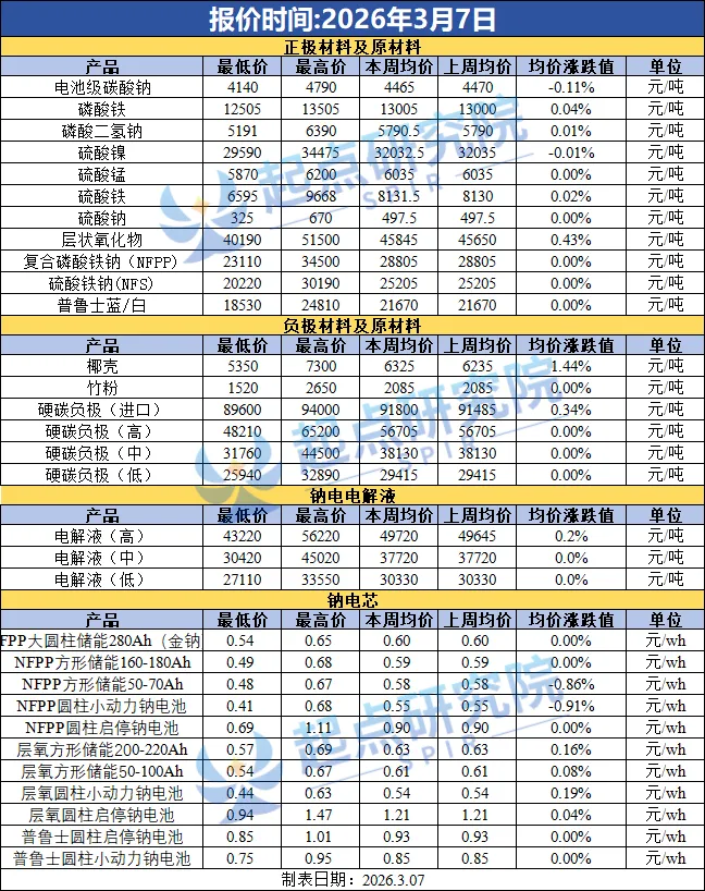起点研究院SPIR钠电价格周报价