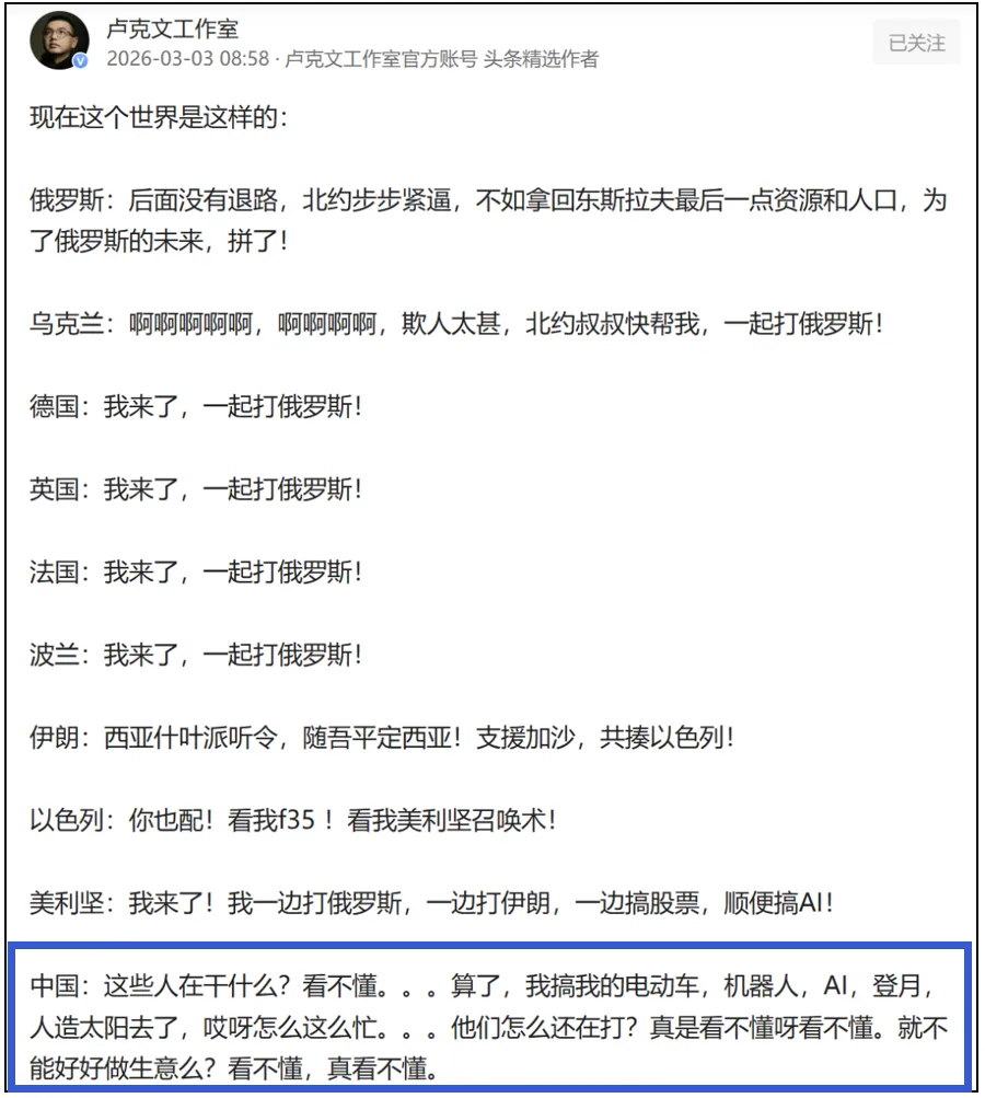 以人工智能数据中心绝对龙头为例,目前建设的数据中心,远不能满足各类数据大模型的需要(这还是AI算力的其中一小块),往后哪个行业离得开算力?走进它的公司如果发现,需求无限大,厂房不断建,订单供不应求,现在因为中东那边打架,我们这边要停建、不发展了?