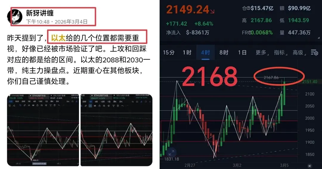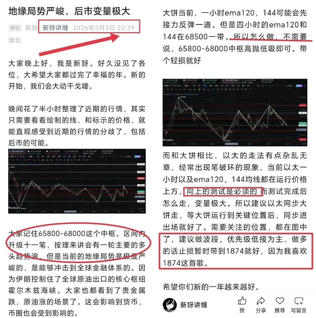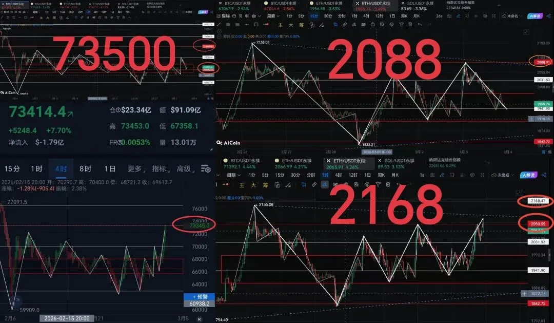 更新比较繁忙,更新较为低频,但是给到的每一个位置,都成了主力介入点或者反转位。大饼的73500一带,以太则是先后的2088和2168一带!三月三日提醒了一句重要的位置在图中,而多重要已经被市场证明了!