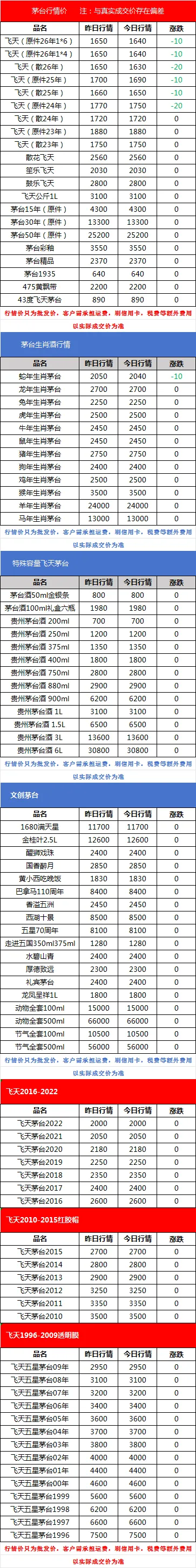 3月8日茅台行情(飞天茅台全线下跌)