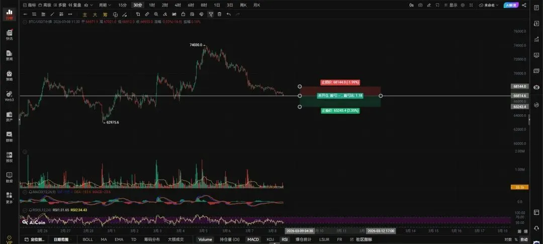 4小时级别跌破66790向下看66005-65107。