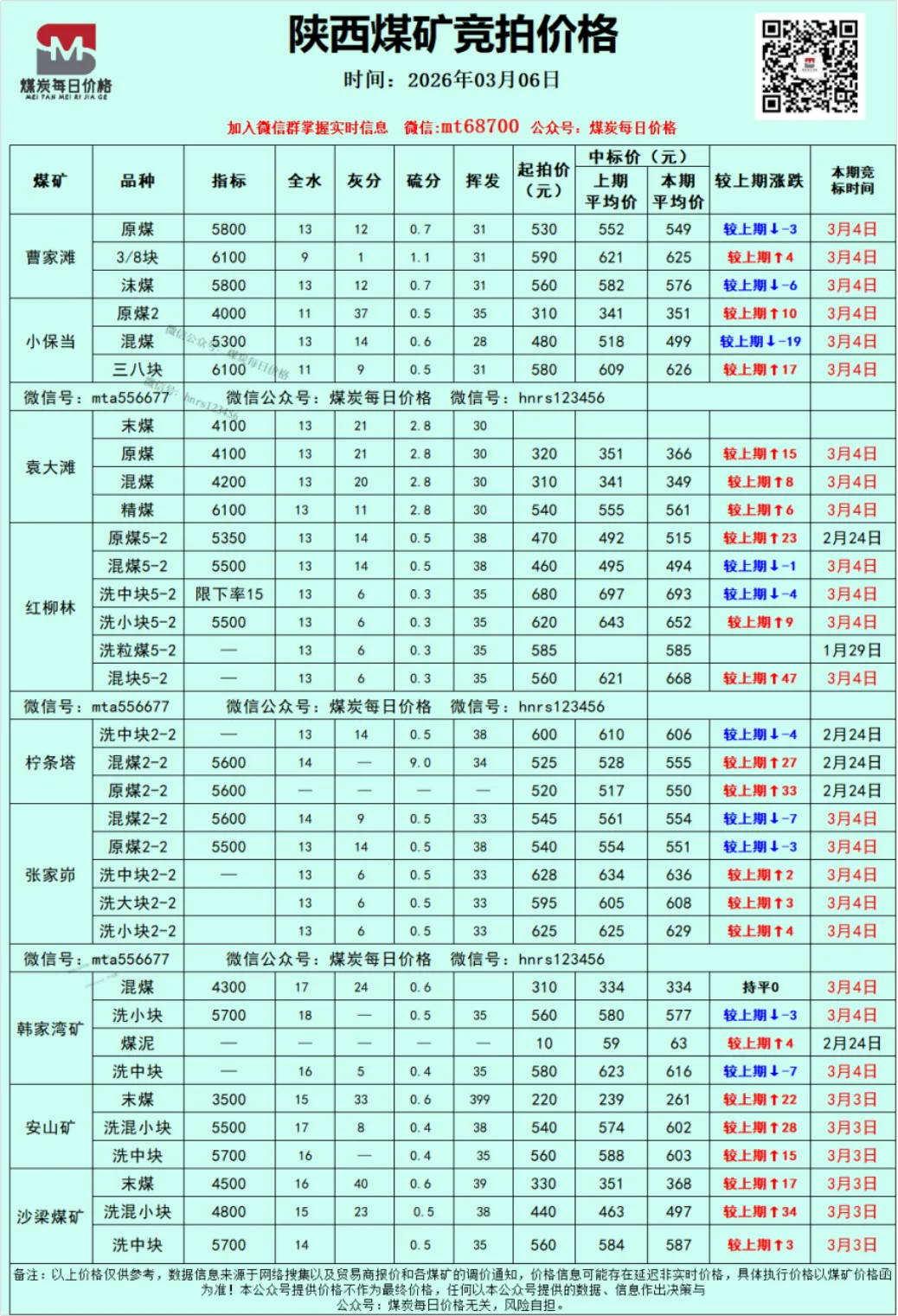 当日煤炭市场价格发布在微信群