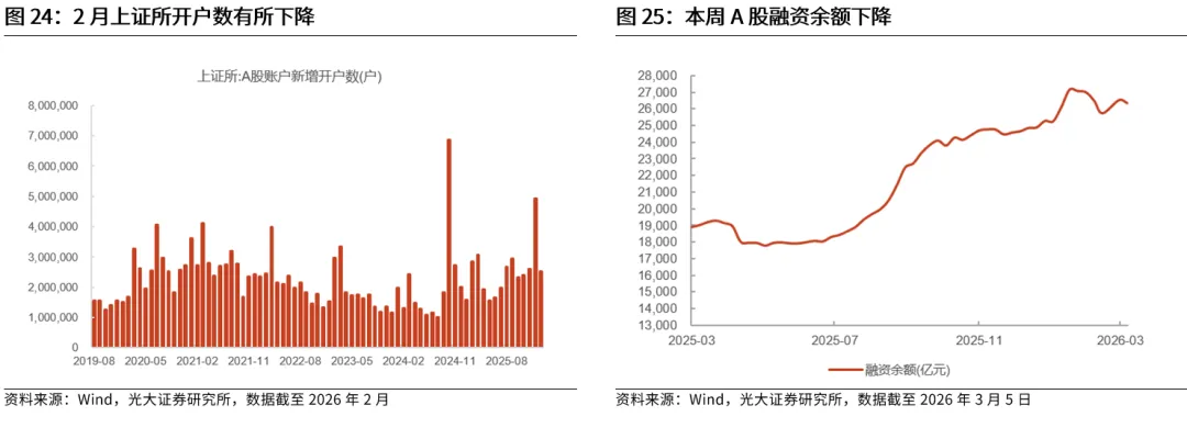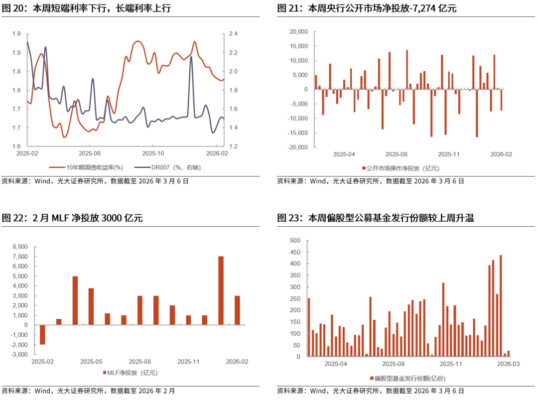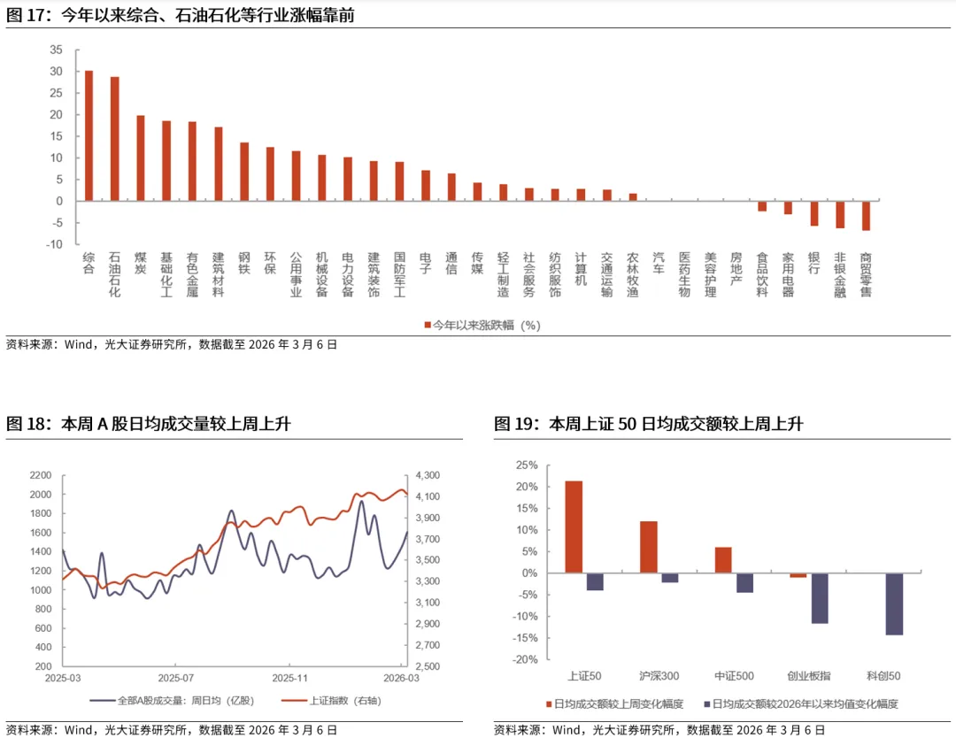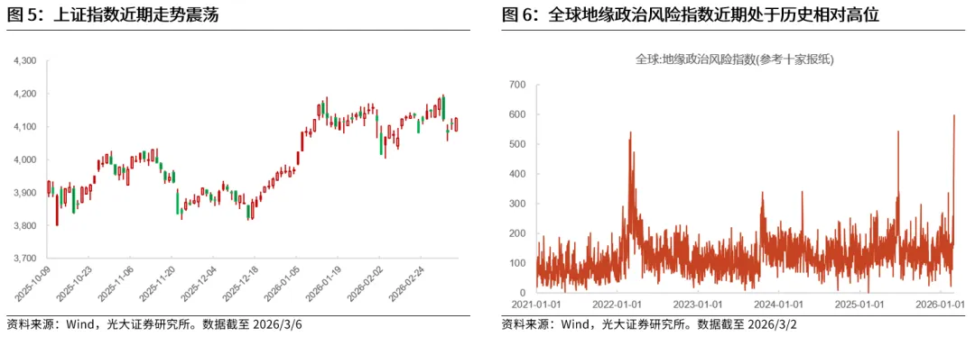 外部扰动影响或逐渐减弱,市场表现值得期待。尽管中东地区冲突走势还存在高度不确定性,但是对于国内市场而言,情绪边际影响最大的时期或许已经过去,未来市场对于中东局势的关注度或将逐渐降低,并将重新回归自身节奏。从当前的情况来看,全国“两会”整体定调稳健,有望为股市上涨奠定坚实政策基调。此外,未来一个月市场将进入到密集的数据与政策验证期。结合之前的年报预告情况,预计未来经济与企业盈利数据将给资本市场带来支撑。总体来看,未来权益市场机会仍然大于风险,表现值得期待。
