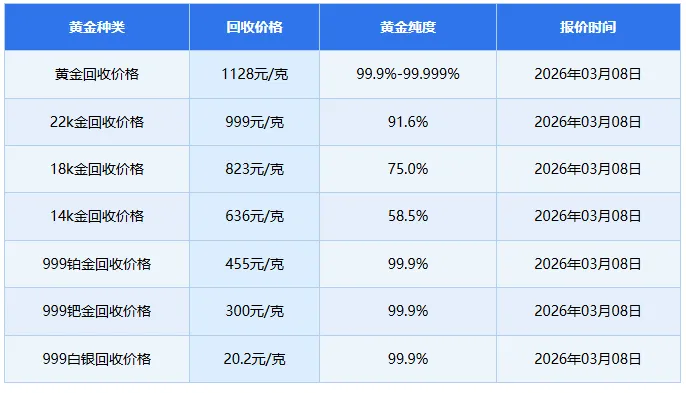 3、黄金回收是没有折旧费的,新旧黄金的回收价格一样。