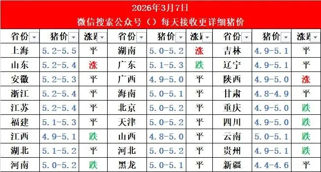 📊 2026年3月7日全国生猪价格行情分析