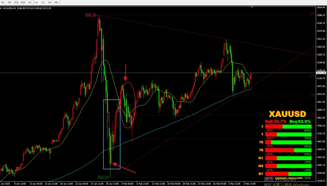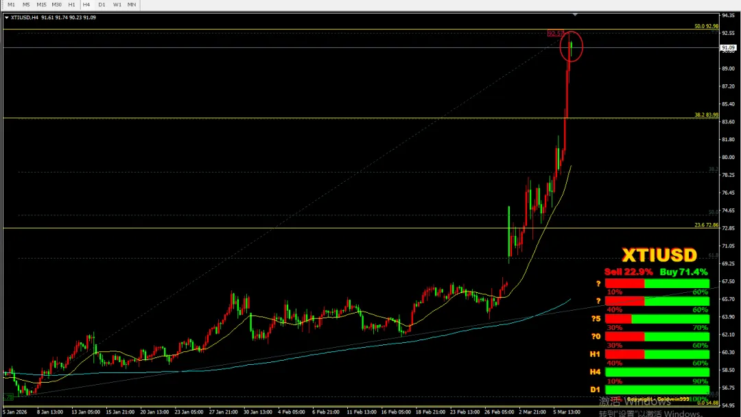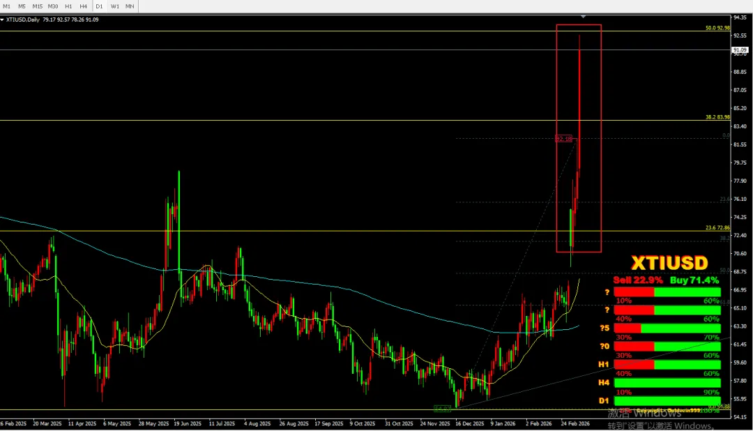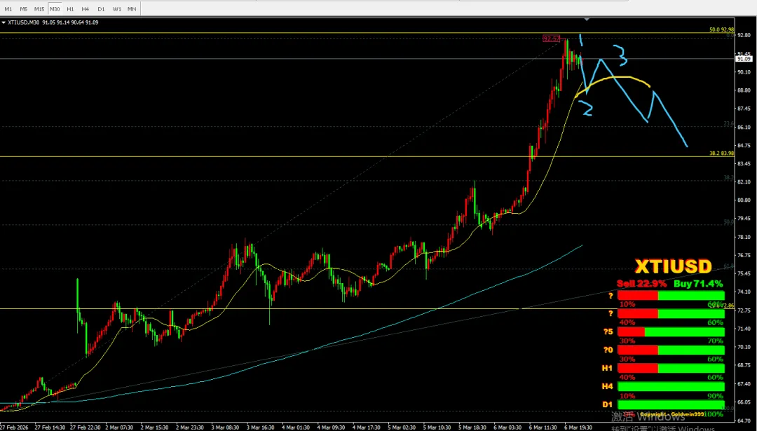 在月末或月初期间,现在是2026年3月8号,新闻报道铺天盖地,原油分析如何如何?但目前还未收反转K线,看下周变化。