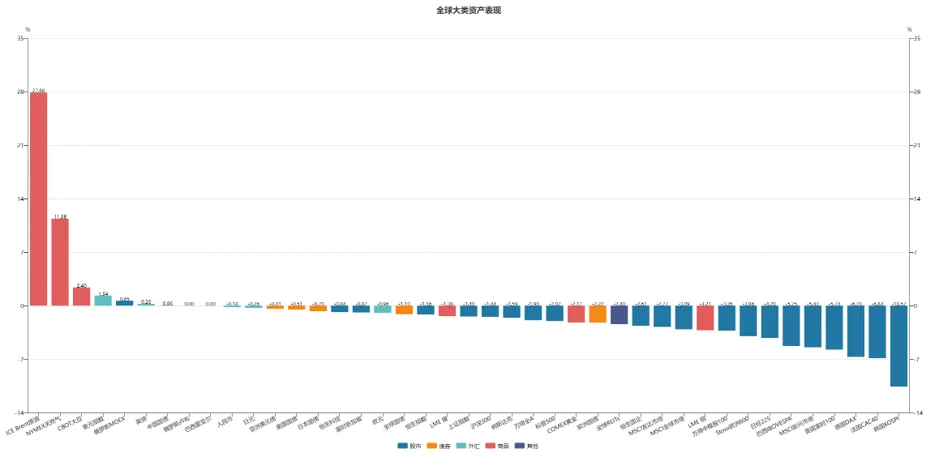 行情表现原油领涨,韩股领跌