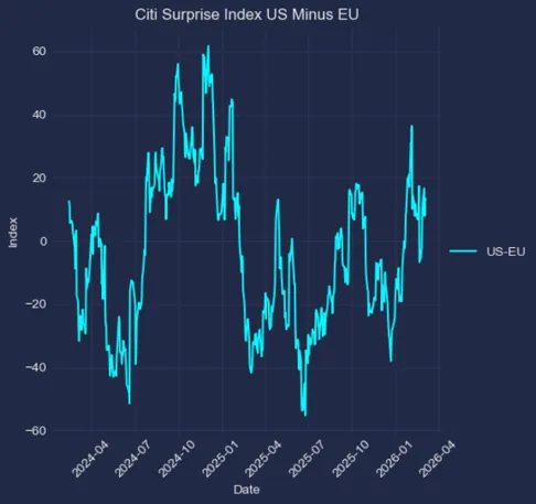 美欧花旗经济意外指数差值:变动不大