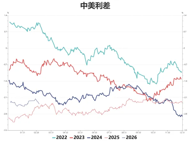 中美利差:边际走弱,周五收-2.37