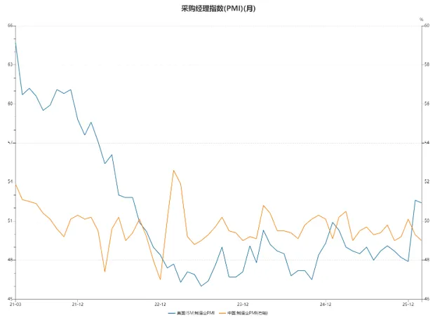 2月制造业PMI中美同步走弱,但美国仍在荣枯线上方